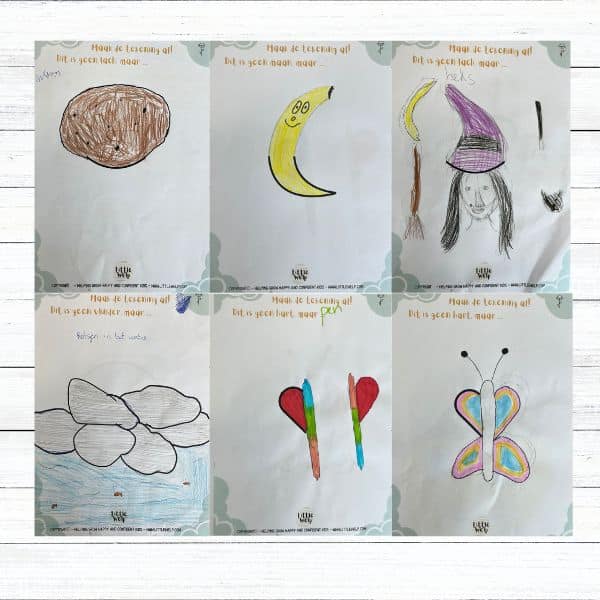 Het is geen… tekening! zet je in op school, thuis of tijdens coaching als een leuke en laagdrempelige manier om te praten over perfectionisme, vaste mindset of faalangst. De oefening is eenvoudig maar krachtig: kinderen werken een halve vorm of onvolledige lijn af tot iets nieuws. Het resultaat is altijd verrassend en uniek. Tijdens de nabespreking ontdek je samen wat ze geleerd hebben over fouten maken, creativiteit en volhouden.